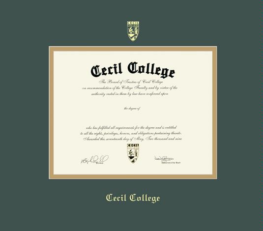 Cecil College Diploma Frame with Green and Gold Double Mat and Gold Embossing