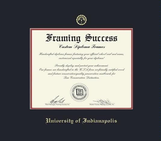 University of Indianapolis Diploma - BA/MA (2019-Present) and Doc. (2/06 to Present) Frame with Black and Red Double Mat and Gold Embossing