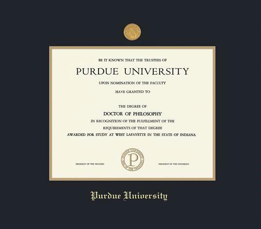 Purdue University Diploma - MA/Doctorate Frame with Medallion and Black and Gold Double Mat and Gold Embossing