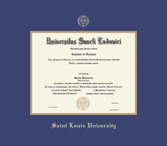 Saint Louis University Diploma - BA/MA/Doc. Frame with Royal Blue and Gold Double Mat and Gold Embossing