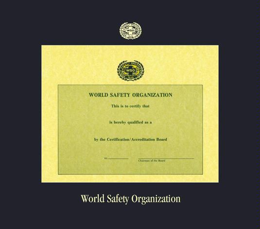 World Safety Organization Certificate Frame with Black Mat featuring Gold Embossing shown