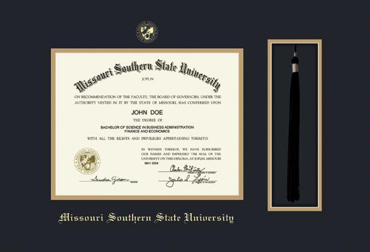 Missouri Southern State University Diploma Frame with Tassel Cut-out and Black and Gold Double Mat and Gold Embossing