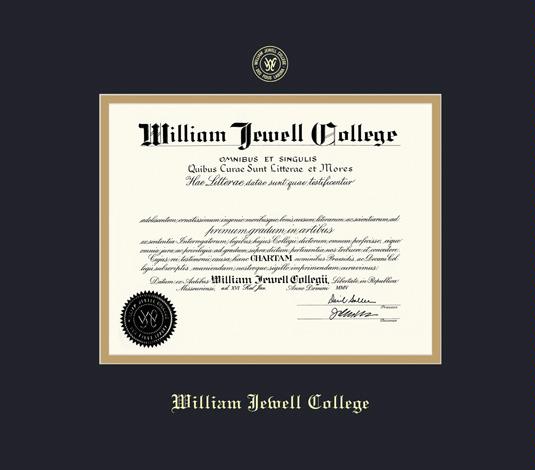 William Jewell College Diploma Frame with Black and Gold Double Mat and Gold Embossing