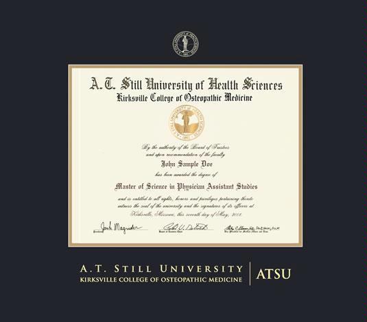 A.T. Still University of Health Sciences Diploma - Kirksville Osteopathic Frame with Black and Gold Double Mat and Gold Embossing