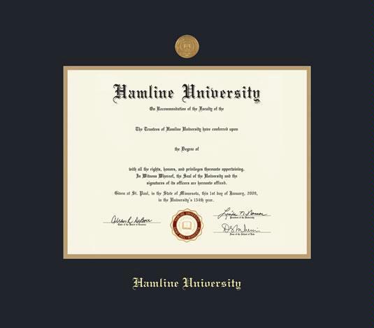 Hamline University Diploma - Doctorate Frame with Medallion and Black and Gold Double Mat and Gold Embossing