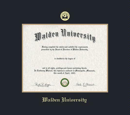 Walden University Diploma (7/09 to 8/20) Frame with Black and Gold Double Mat and Gold Embossing