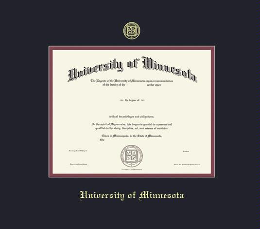 University of Minnesota - Minneapolis Diploma Frame with Black and Maroon Double Mat and Gold Embossing