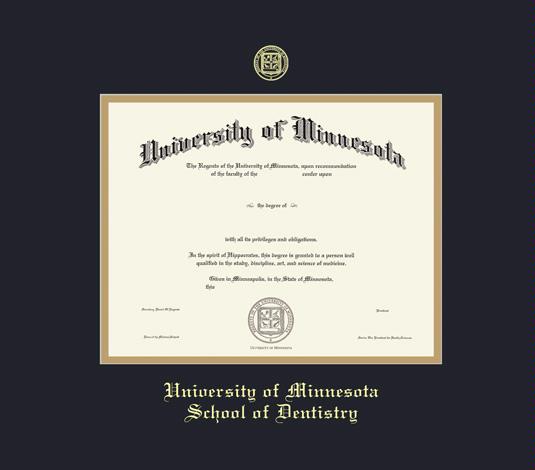 University of Minnesota - Minneapolis Diploma - Dentistry/DDS Frame with Black and Gold Double Mat and Gold Embossing