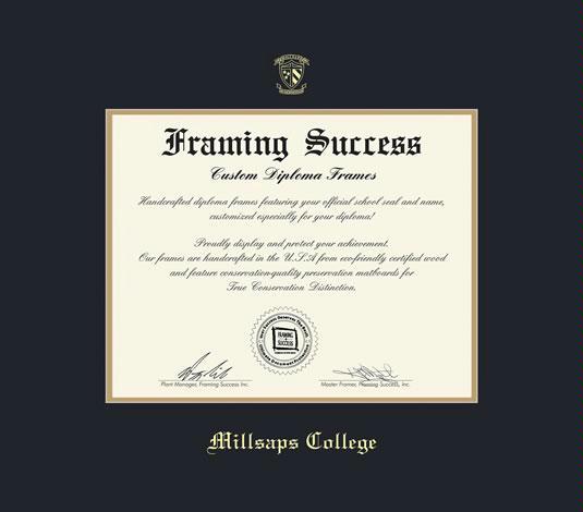 Millsaps College Diploma (5/07 to Present) Frame with Black and Gold Double Mat and Gold Embossing