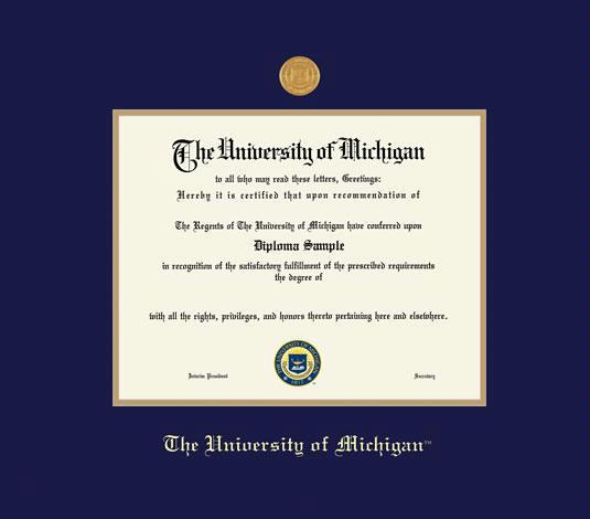 University of Michigan Ann Arbor Diploma - Bachelor/Master (2001 to Present) Frame with Medallion and Navy Blue and Gold Double Mat and Gold Embossing