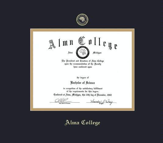 Alma College Diploma Frame with Black and Gold Double Mat and Gold Embossing