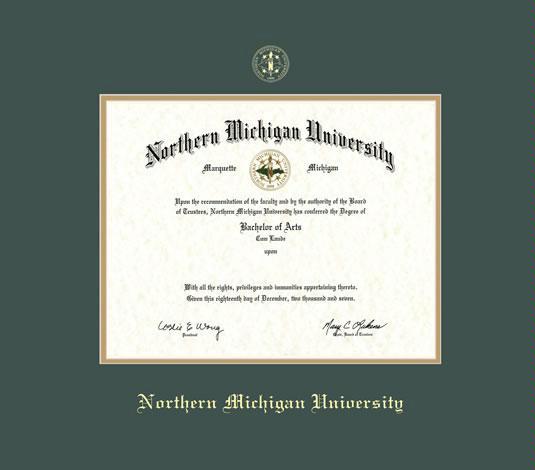 Northern Michigan University Diploma Frame with Green and Gold Double Mat and Gold Embossing