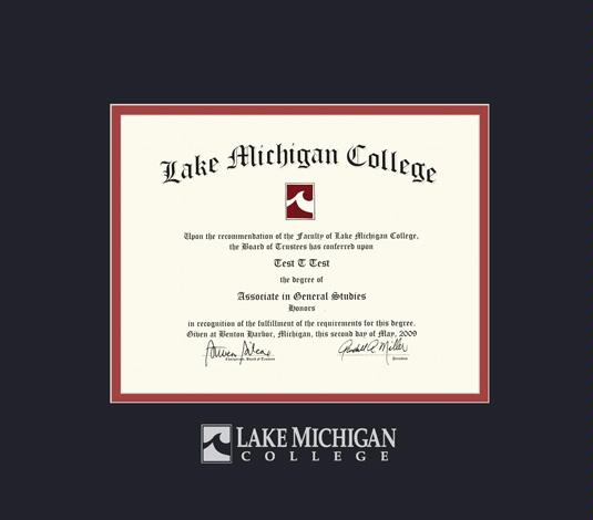 Lake Michigan College Diploma (7"h x 9"w) Frame with Black and Red Double Mat and Silver Embossing