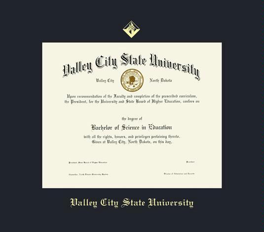 Valley City State University Diploma Frame with Black Mat and Gold Embossing