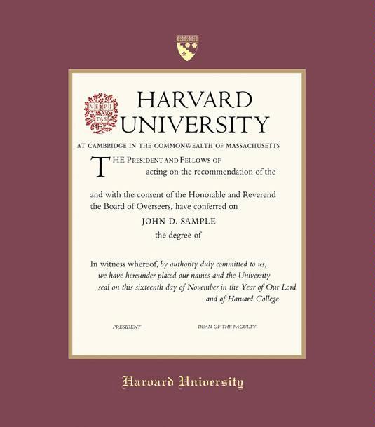 Harvard University School of Education Diploma Frame with Maroon and Gold Double Mat and Gold Embossing