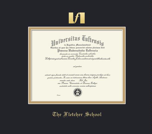 Tufts University Diploma - Fletcher Frame with Black and Gold Double Mat and Gold Embossing