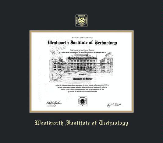Wentworth Institute of Technology Diploma (4/09 to Present) Frame with Black and Gold Double Mat and Gold Embossing