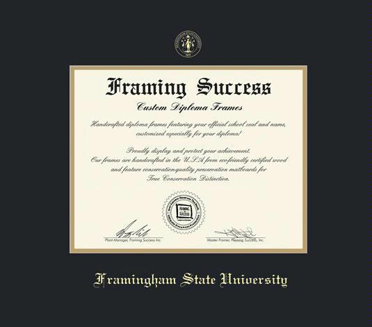Framingham State University Diploma (10/10 to Present) Frame with Black and Gold Double Mat and Gold Embossing