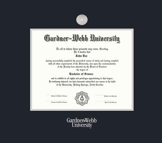 Gardner-Webb University Diploma Frame with Medallion and Black and Silver Double Mat and Silver Embossing