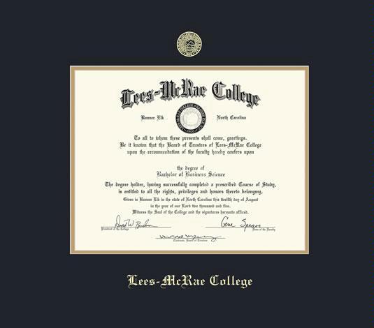 Lees-McRae College Diploma Frame with Black and Gold Double Mat and Gold Embossing