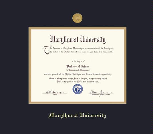 Marylhurst University Diploma Frame with Medallion and Black and Gold Double Mat and Gold Embossing