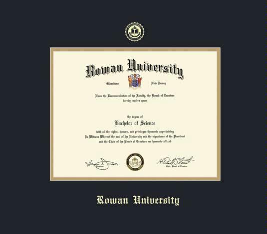 Rowan University Diploma (7/05 to Present) Frame with Black and Gold Double Mat and Gold Embossing