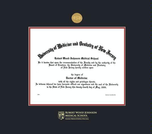 Robert Wood Johnson Diploma (Pre 2013) Frame with Medallion and Black and Red Double Mat and Gold Embossing