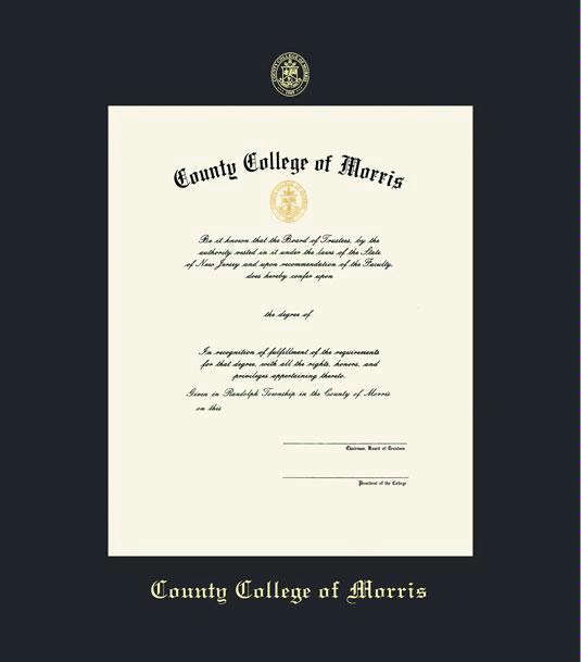 County College of Morris Diploma Frame with Black Mat and Gold Embossing