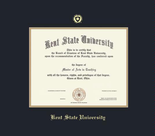 Kent State University Diploma - BA and (Pre 8/03) MA Frame with Black and Gold Double Mat and Gold Embossing