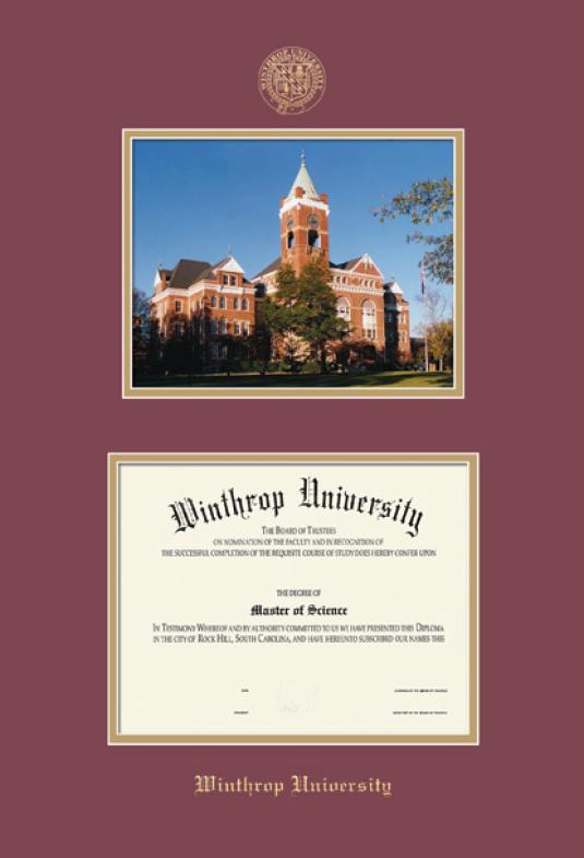 Winthrop University Diploma and Photo Frame with Maroon and Gold Double Mat and Gold Embossing