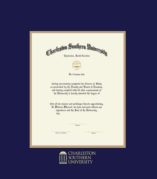 Charleston Southern University Diploma (2/10 to Present) Frame with Navy Blue and Gold Double Mat and Gold Embossing