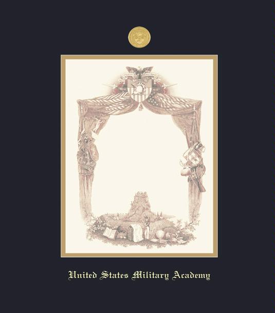 United States Military Academy Diploma Frame with Medallion and Black and Gold Double Mat and Gold Embossing
