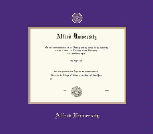 Alfred University Diploma - BA/MA Frame with Purple and Gold Double Mat and Gold Embossing