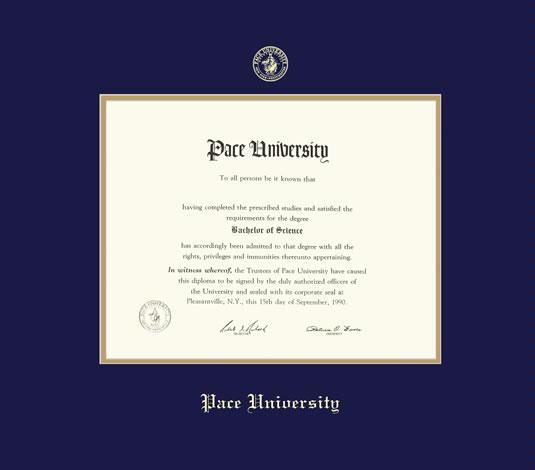 Pace University Diploma Frame with Navy Blue and Gold Double Mat and Gold Embossing