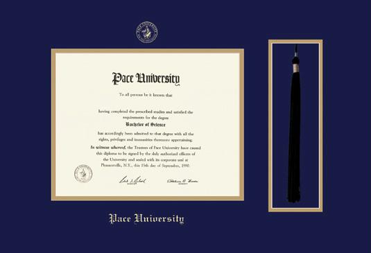 Pace University Diploma with Tassel Cut-out Frame Featuring a Navy Blue and Gold Double Mat with Gold Embossing
