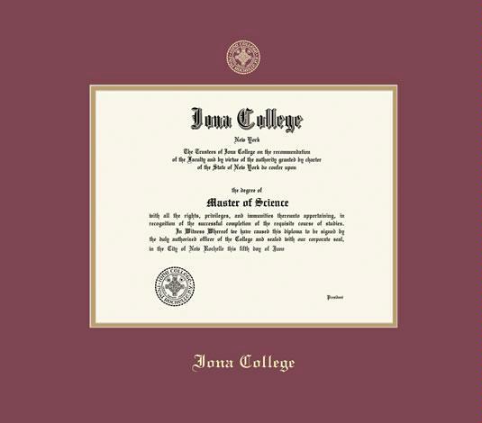 Iona College Diploma (Pre 7/22) Frame with Maroon and Gold Double Mat and Gold Embossing