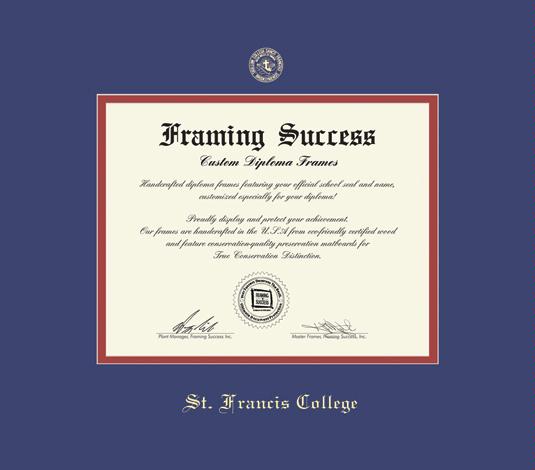 St. Francis College Diploma Frame with Royal Blue and Red Double Mat and Gold Embossing
