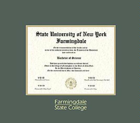 Farmingdale State College Diploma Frame with Green and Gold Double Mat and Gold Embossing