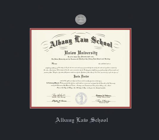 Albany Law School Diploma Frame with Medallion and Black and Red Double Mat and Silver Embossing