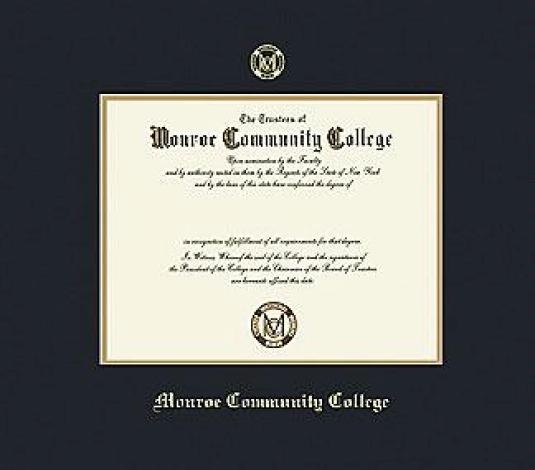 Monroe Community College Diploma Frame with Black and Gold Double Mat and Gold Embossing