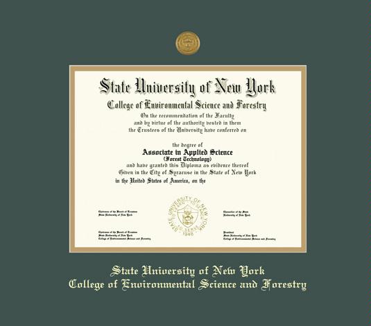SUNY Environmental Science & Forestry Diploma Frame with Medallion and Green and Gold Double Mat and Gold Embossing