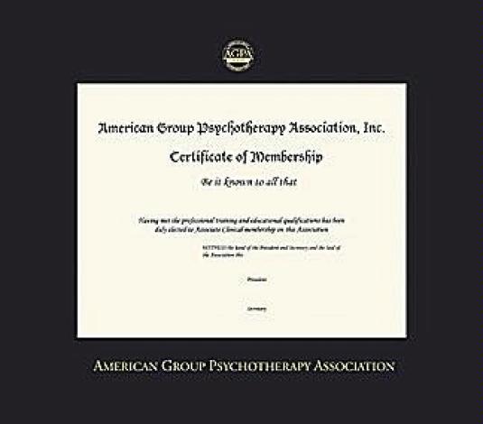 American Group Psychotherapy Association Certificate Frame with Black Mat and Gold Embossing