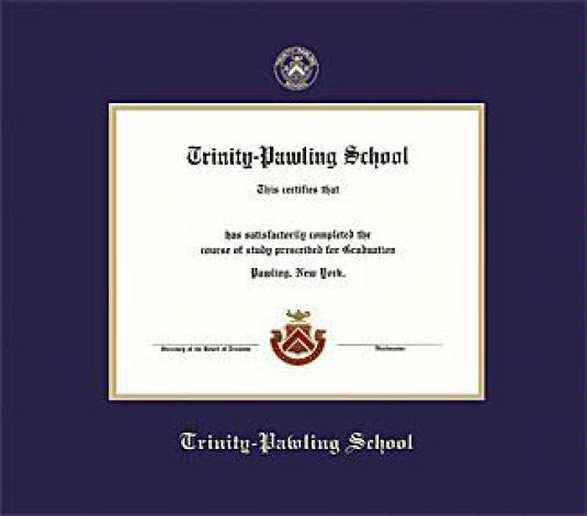 Trinity-Pawling School Diploma Frame with Navy Blue and Gold Double Mat and Gold Embossing