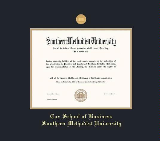 Southern Methodist University Diploma - BA Cox Business (Pre 12/25) Frame with Medallion and Black and Gold Double Mat and Gold Embossing
