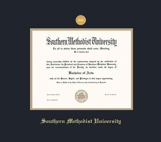 Southern Methodist University Diploma - MA/PhD (2003 to Present) and (12/25 to Present) BA Frame with Medallion and Black and Gold Double Mat and Gold Embossing