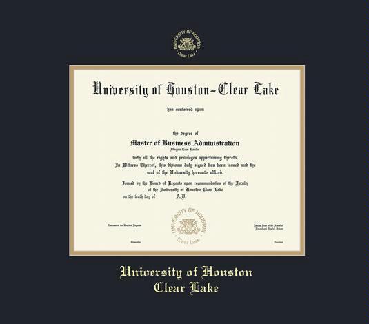 University of Houston - Clear Lake Diploma Frame with Black and Gold Double Mat and Gold Embossing