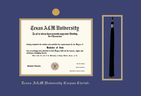 Texas A&M University-Corpus Christi Diploma (2/10 to Present) with Tassel Cut-out and Medallion Frame Featuring a Royal Blue and Gold Double Mat with Gold Embossing