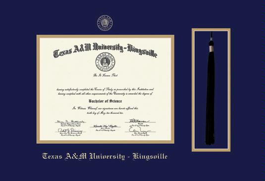 Texas A&M University-Kingsville Diploma Frame with Tassel Cut-out and Navy Blue and Gold Double Mat and Gold Embossing