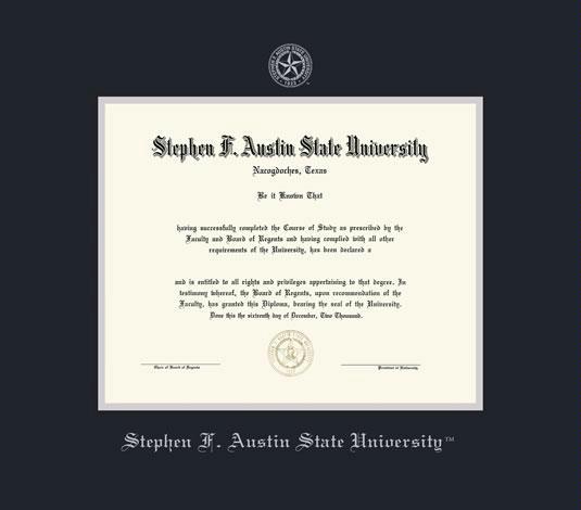 Stephen F. Austin State University Diploma Frame with Black and Silver Double Mat and Silver Embossing