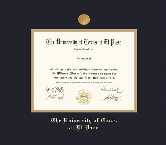 The University of Texas-El Paso Diploma - PhD and (2014 only) BA/MA Frame with Medallion and Black and Gold Double Mat and Gold Embossing